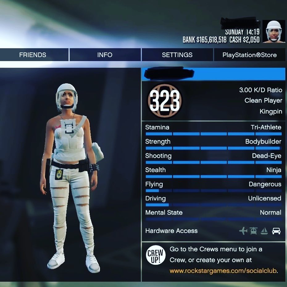 Main acc is now pretty much complete Both characters= Max stats All garages full of modded cars+facility,nc,special vehicles and planes 1.1bill money Unlocks on first c and fits on sec c Decent rank and kd Sure i could get More fits but im happy how it is now