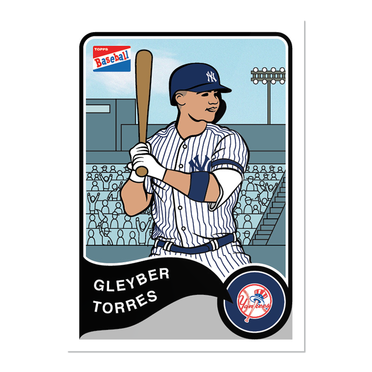 #ToppsThrowbackThursday set, based on 2003 Topps Bazooka Joe #25 Gleyber Torres, Yankees #26 Joey Votto, Reds #27 Mike Trout, Angels #28 Vladimir Guerrero Jr., Blue Jays #29 Christian Yelich, Brewers #30 Noah Syndergaard, Mets pic.twitter.com/FVu36izZuB