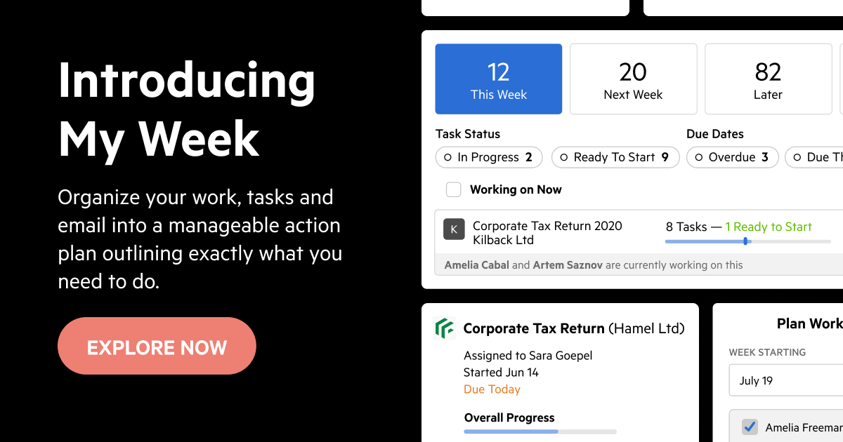 Our newest feature is designed just for you. My Week in Karbon organizes your work, tasks and email into a manageable action plan outlining exactly what you need to do. Learn more