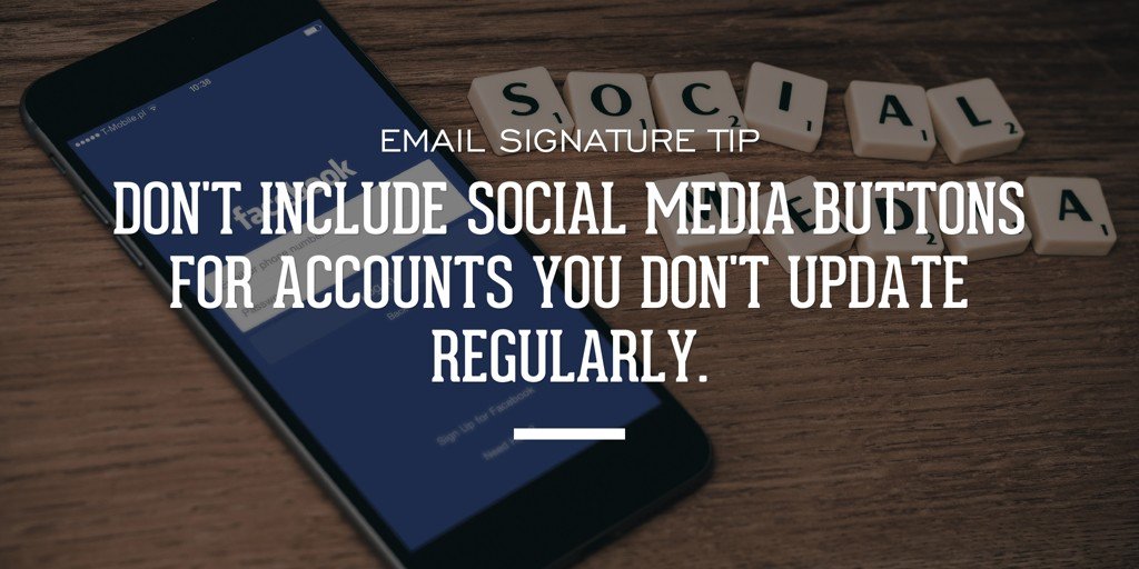 #EmailSignature Tip: Only use relevant social media accounts that are updated regularly. https://goo.gl/bmpJcM#emailtips#emailpic.twitter.com/kKIcPPwdzb