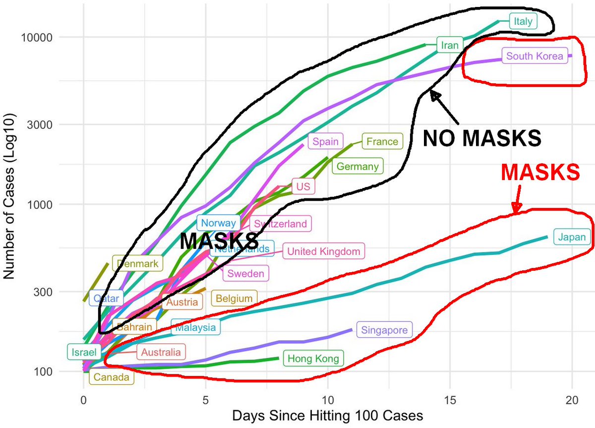 Find the difference. (correlation is not necessarily causation, but still a striking correlation of mask-usage and #covid19 growth rate) My guess: masks block virus-to-community shedding directly at the source (mouth nose), even from pre-symptomatic cases.pic.twitter.com/1OYtj28rVj