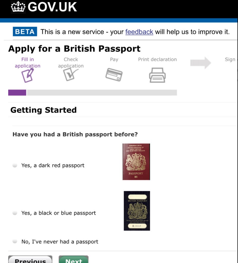 Oh dear. The official new Government online passport application service also refers to a picture of the old passport as “black” or blue - it is truly Orwellian to suggest “never been black” - it’s literally on the form.pic.twitter.com/YH7mEnOKid