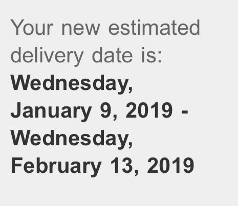 My estimated delivery has a range of over a month! Will be really happy once I get my hands on it though.pic.twitter.com/VgD9fpJB4g