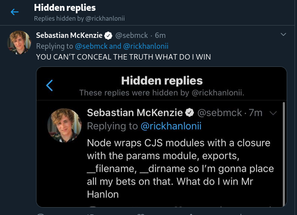 Node wraps CJS modules with a closure with the params module, exports, __filename, __dirname so I’m gonna place all my bets on that. What do I win Mr Hanlon