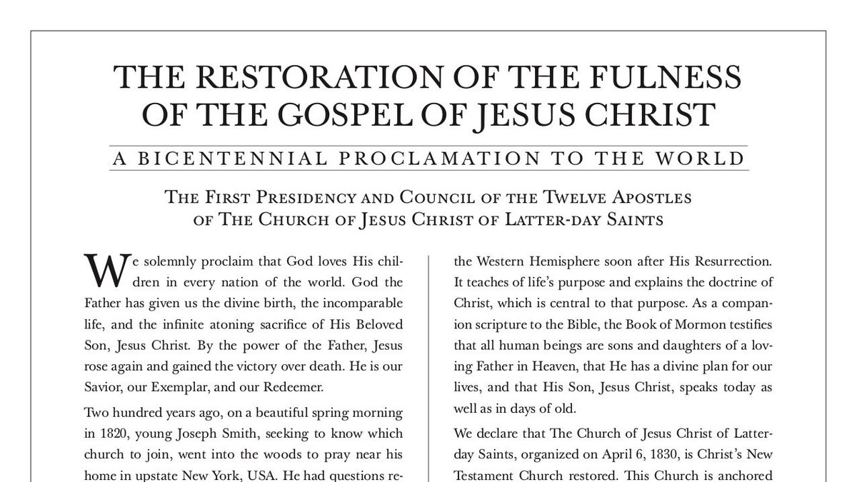 The Church of Jesus Christ of Latter-Day Saints does not publish proclamations like this very often (last one was decades ago). Definitely worth a read!https://twitter.com/Ch_JesusChrist/status/1246863717809008640 …