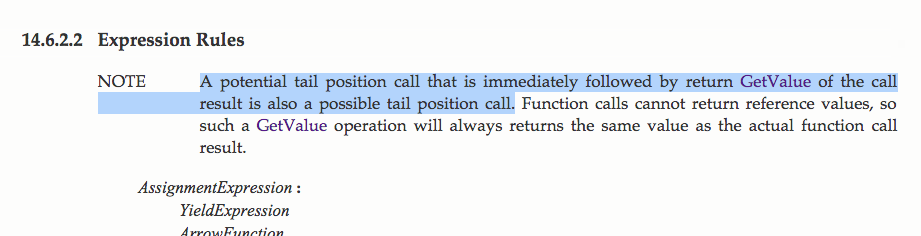 @rauschma it's a perf optimization. isn't question not "does spec allow", but "does spec disallow" an engine from TCO'ing a certain case?