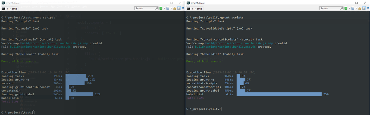 Восхитительный новый #babeljs 6-ой версии (справа). Спасибо за модульность, ребята