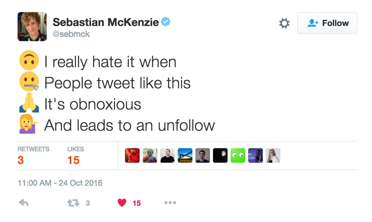 Question: is this something that genuinely annoys people? I wasn't much of an emoji person until a year or two ago. Maybe swung too far?pic.twitter.com/RHN0RyU0w6