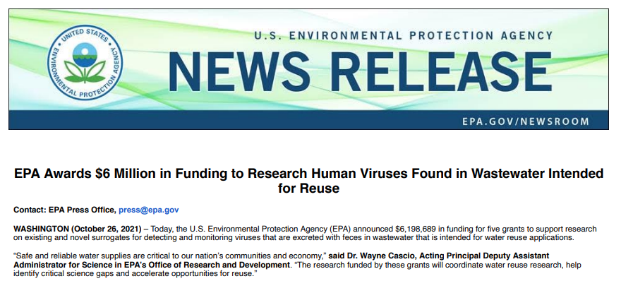 Now they tell us. Stick to bottled water...from epa: $6M grants to study viruses that are excreted with feces in wastewater that is intended for water reuse applications.pic.twitter.com/dGBPRBP8JV