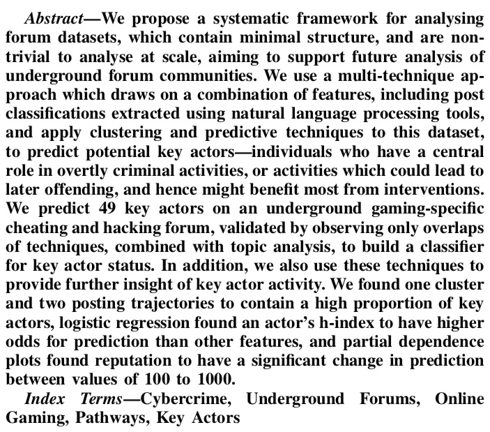J. Hughes et al., “From playing games to committing crimes: A multi-technique approach to predicting key actors on an online gaming forum” [abstract as image]