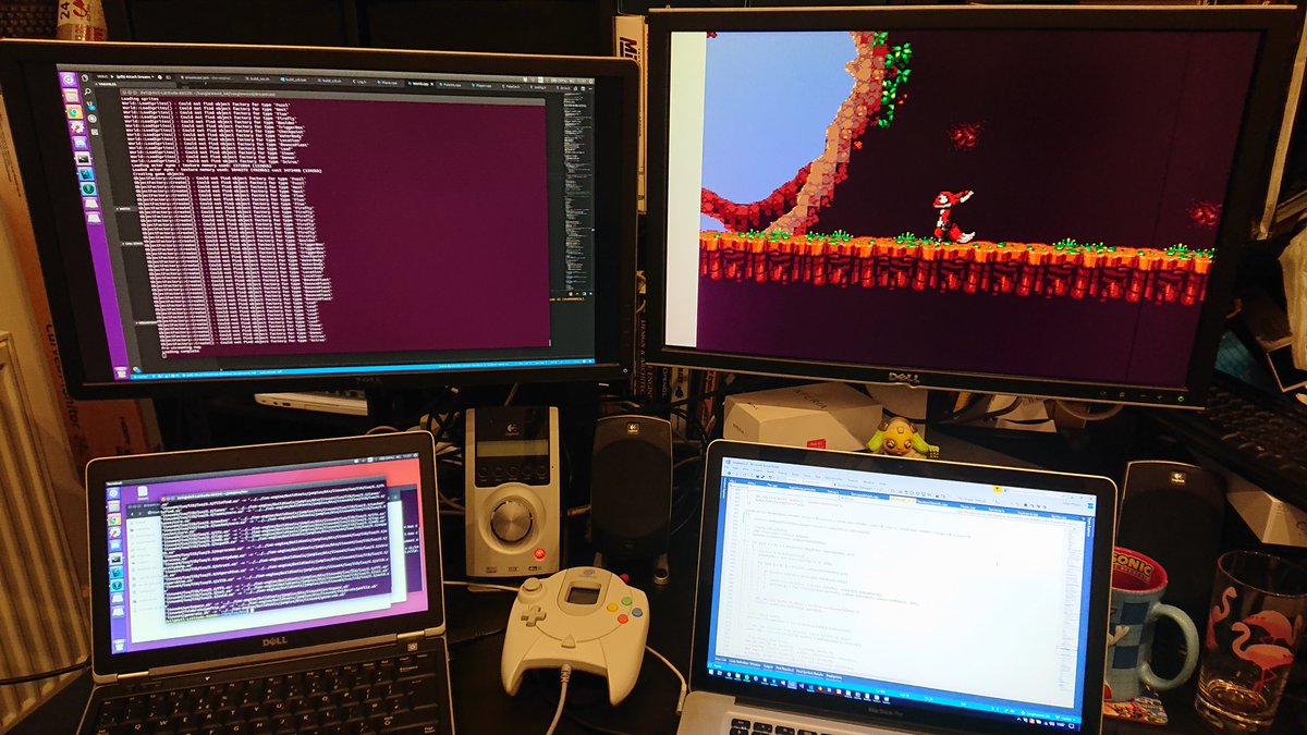Overnight soak test on Dreamcast finally passed! Been chasing down a "random" crash for weeks. Cause was a serialiser bug, serialising a palette of negative size, then world builder writes a byte to an array with that offset. One trashed byte = 3 weeks down time.pic.twitter.com/T8lYwW77cn