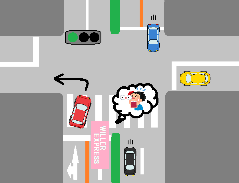 交差点でよくある光景です。 これは右車線を走行しているのが大型車でなくても大変危険な行為です。 ブレーキでの回避が間に合わず、ハンドルで逃げることが多くなりますので分離帯に衝突したり、最悪の場合膨らんだ左折車に衝突し大事故に繋がります。 しっかり自車の位置を意識して曲がりましょう。pic.twitter.com/Nu2F28s4VZ