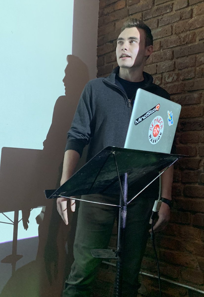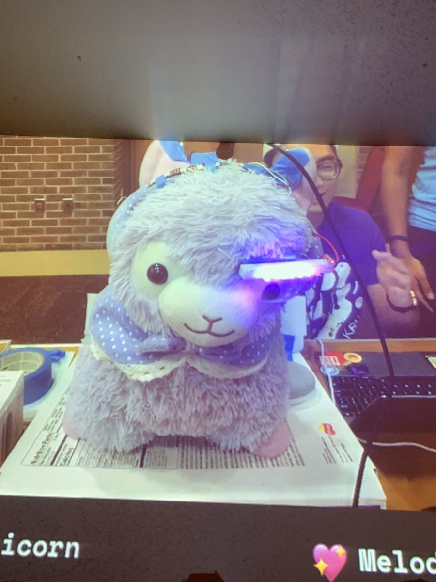 And finally @pixelyunicorn is talking about spooking our your friends using Electron. This is a cyborg unicorn they built earlier.pic.twitter.com/Hrkq4dlsIe