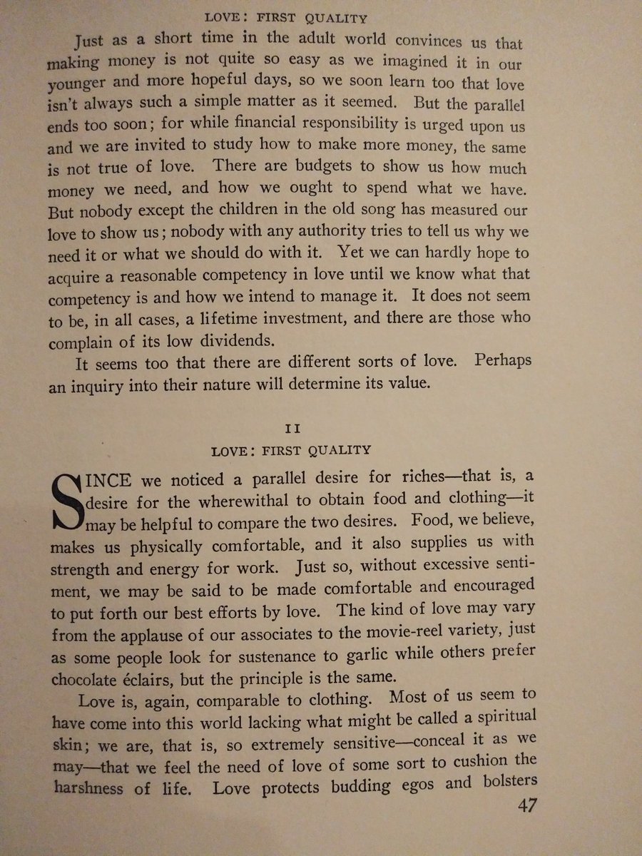 "Just as we wish to receive love from the best sources, so we are impelled to select nice people as recipients of this gift."