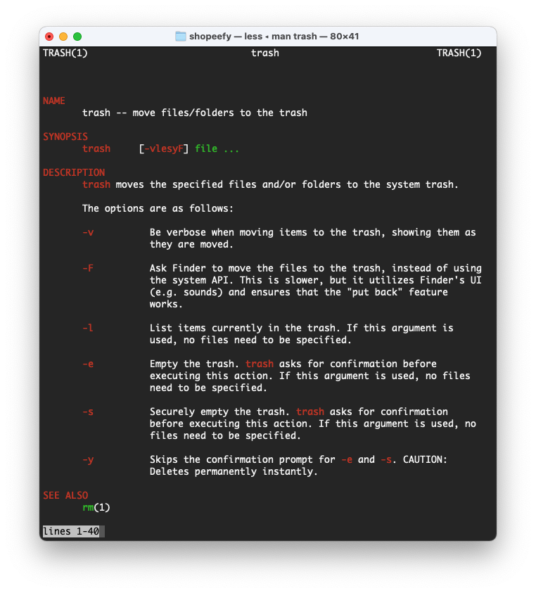 macOS comes with `trash` which is kinda like `rm` but moves it to the system Trash instead.pic.twitter.com/CdHiVbzvzV