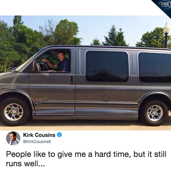 Kirk Cousins signed a new $84M deal this offseason, but that doesn't mean it's time to spend it on a new ride.pic.twitter.com/cYP25ghNYj