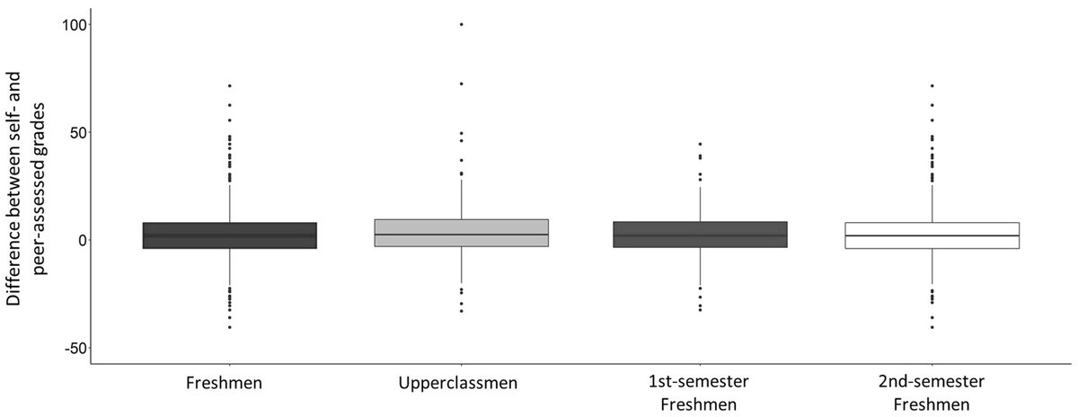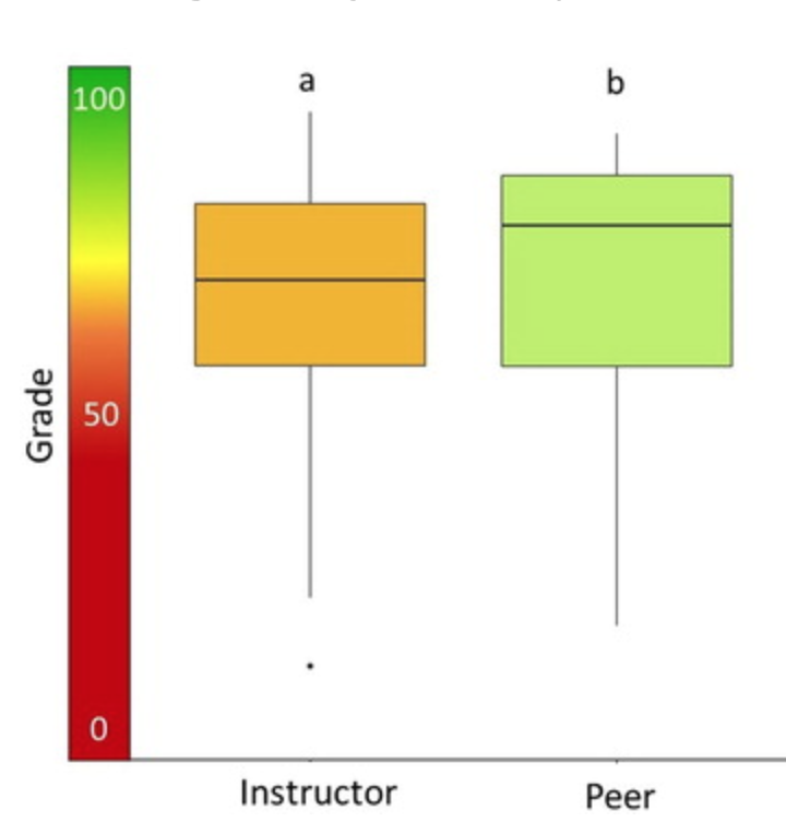 Students applied rubric criteria more leniently to their own writing than their peers did. However, both self and peer-assessments were overestimated compared to instructor's assessment of the same work using the same rubric. The grades were: instructors < peers < self. [6/9]pic.twitter.com/5HnnZLvAa8