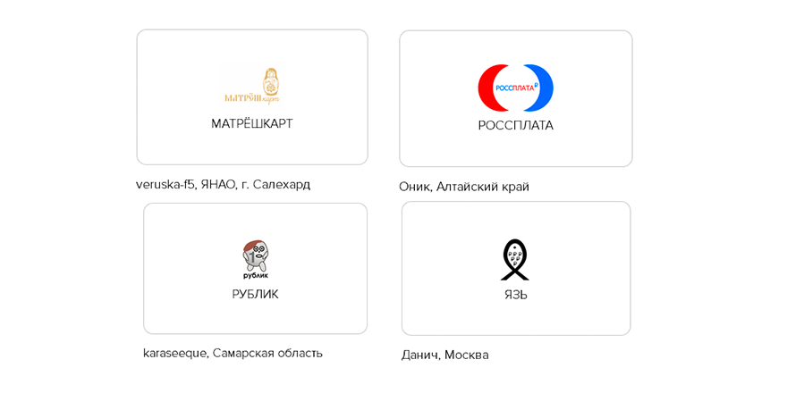 Всем весёлый народный креатив с конкурса на логотип и название национальной платёжной карты. http://geektimes.ru/p/249062/ pic.twitter.com/xKYQearZNh