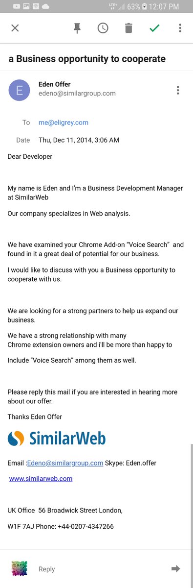 .@SimilarWeb reached out to me repeatedly over email and LinkedIn with "opportunities to cooperate".pic.twitter.com/oeAKSdcQwR