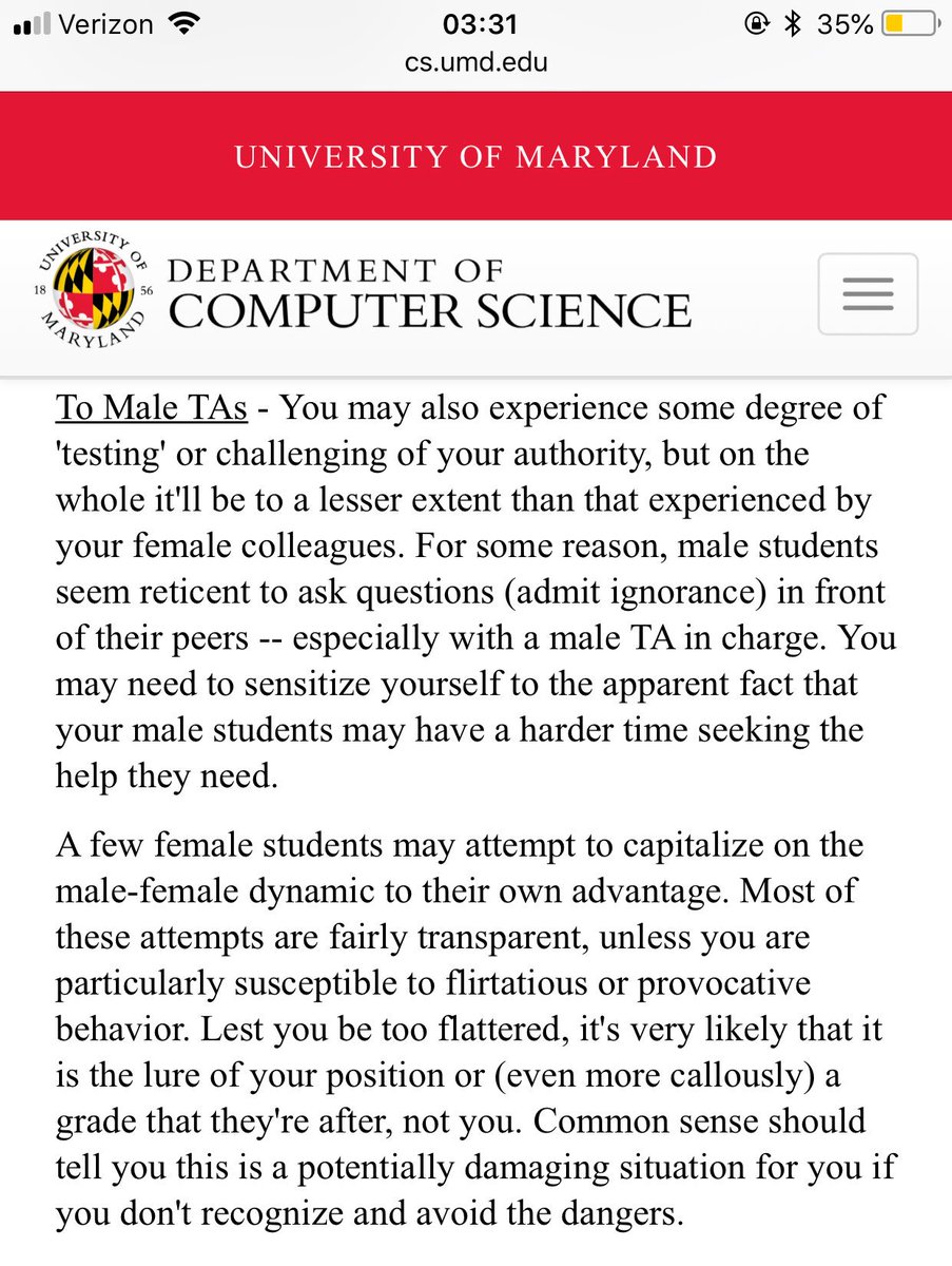 Straight out of UMD’s handbook for TAs: Female TAs should expect to have their authority challenged more than males, yet they have to be “patient” and tolerant and constantly have to prove their worth. Why do we accept and normalize this discriminatory behavior?pic.twitter.com/egjuhrOark