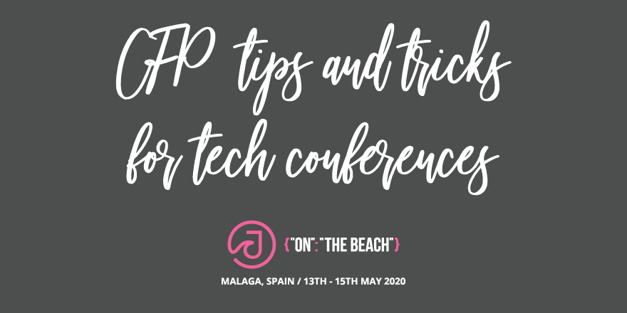 We have written a blog post with some CFP tips and tricks for tech conferences. We hope it is useful! https://www.jonthebeach.com/blog/CFP-Tips-and-Tricks-for-Tech-Conferences … And remember that you only have 10 days to submit a talk to our CFP!