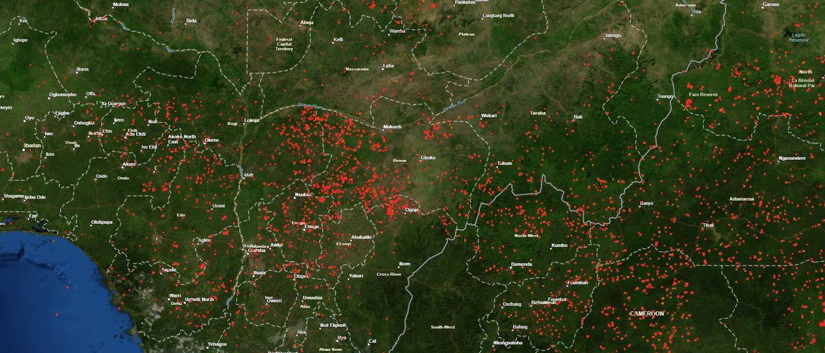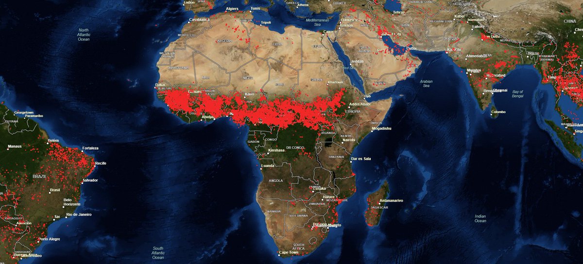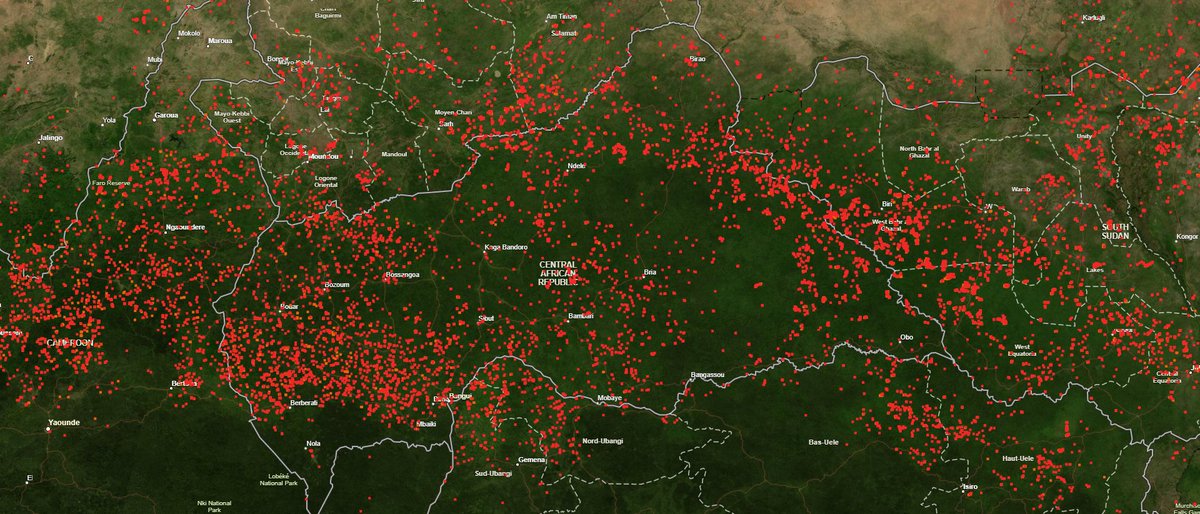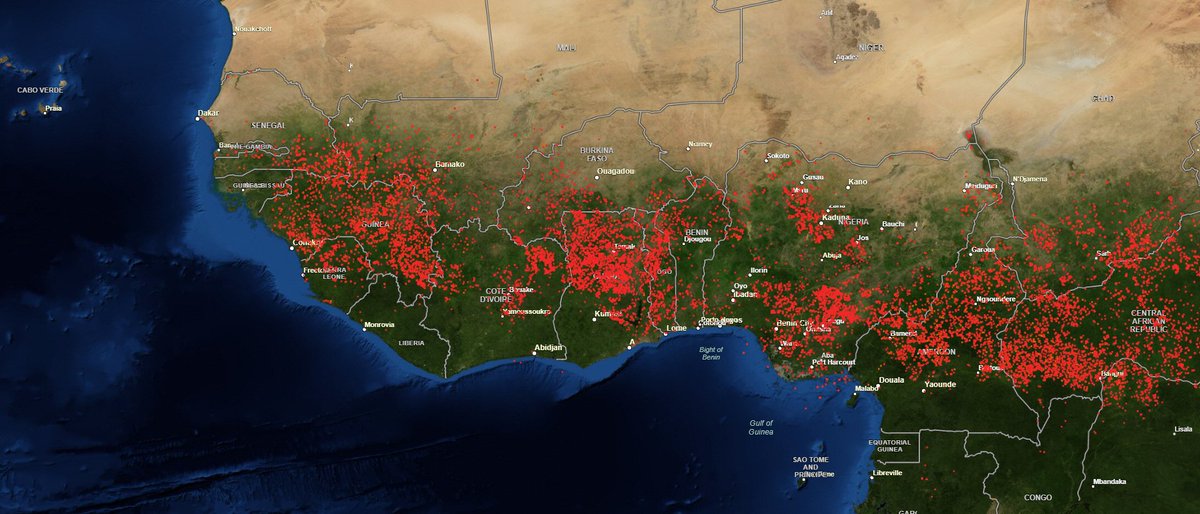 Guinea Liberia Nigeria Benin Cameroon Central African Republic South Sudan Ivory Coast Burkina Faso Ethiopia Chad All these countries are suffering forest fires Why are we not talking about the fires in Africa? Each point is a fire.pic.twitter.com/OtodovuBLS