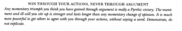 anytime you're tempted to pointlessly argue diet, lifestyle, fitness, politics, women etc remember Law # 9 Win Through Your Actions, Never Through Argumentpic.twitter.com/PY59QpZpg5
