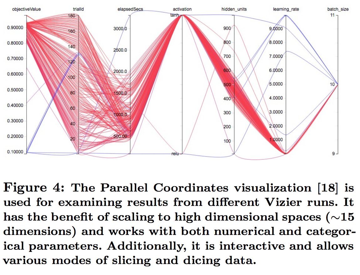 Parallel coordinates visualization looks like an incomprehensible mess at first encounter, but it gives you amazing slicing abilities. It is now my favorite tool for understanding high dimensional data, especially for hyperparameter optimization. https://ai.google/research/pubs/pub46180 …pic.twitter.com/DTjLbbjuSr