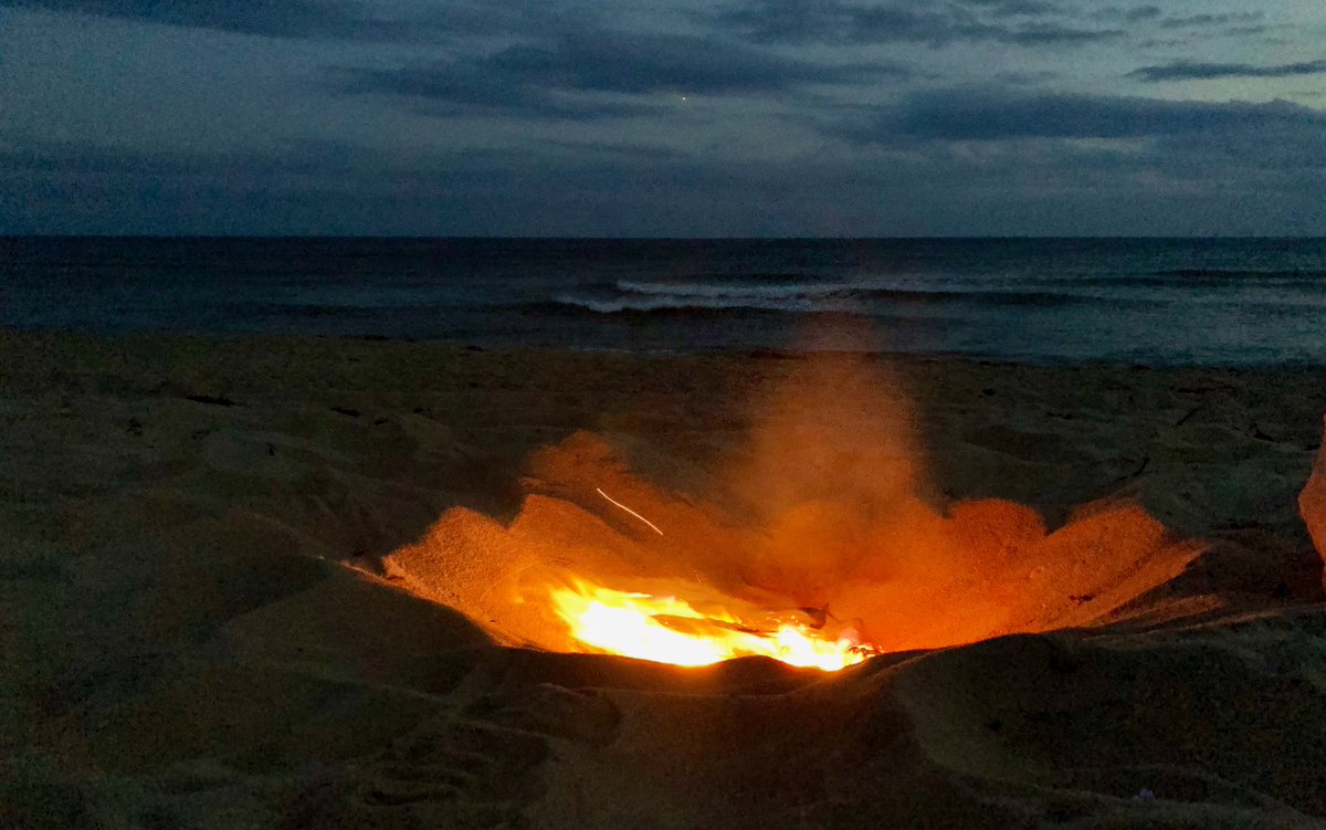 you can just see the white caps of the breaking waves behind the fire. pretty awesome evening...pic.twitter.com/vVxGmLtNLU – at Clark's Cove Beach
