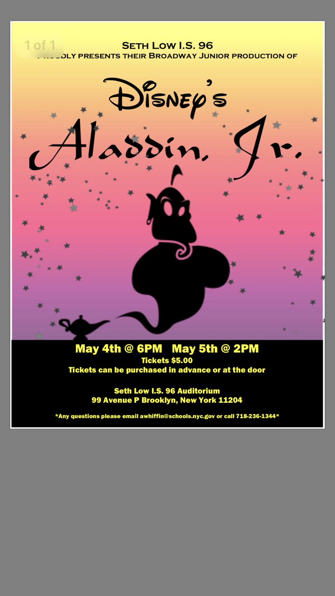 So proud of these kids! Come out and support them tomorrow! Seth Low presents Aladdin tomorrow at 2pm!pic.twitter.com/Gtw1HInyzq