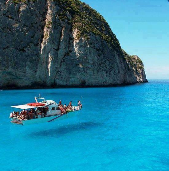 Zakynthos Island, Greece. The water is so clear, it looks like the boat is floating in the air :pic.twitter.com/40Rk9gUZGq