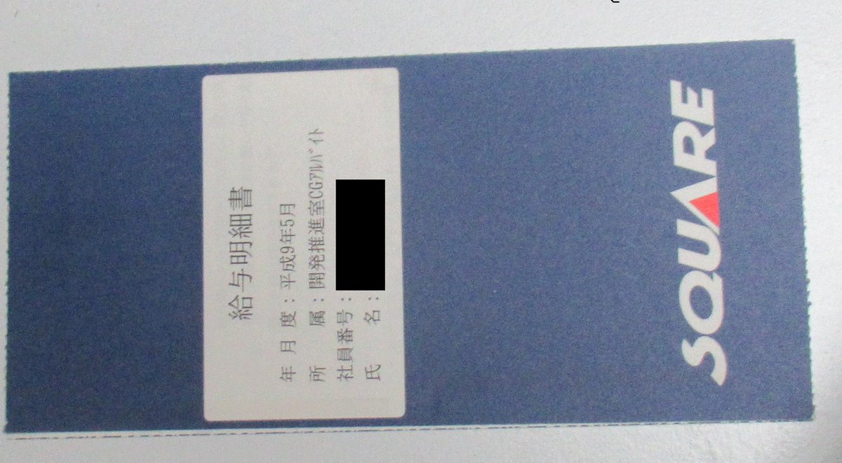 スクウェア時代の給料明細が見つかった… 最初で最後のゲーム業界でした… 当時2か月後に支払われる給料にも耐えられないくらいビンボーで 車のローン払えねえぇぇ!!で速攻でリタイアさせてもらいました…糞の役にも立たてなくてゴメンなさいスクウェアさん…pic.twitter.com/FoDvTJILPd