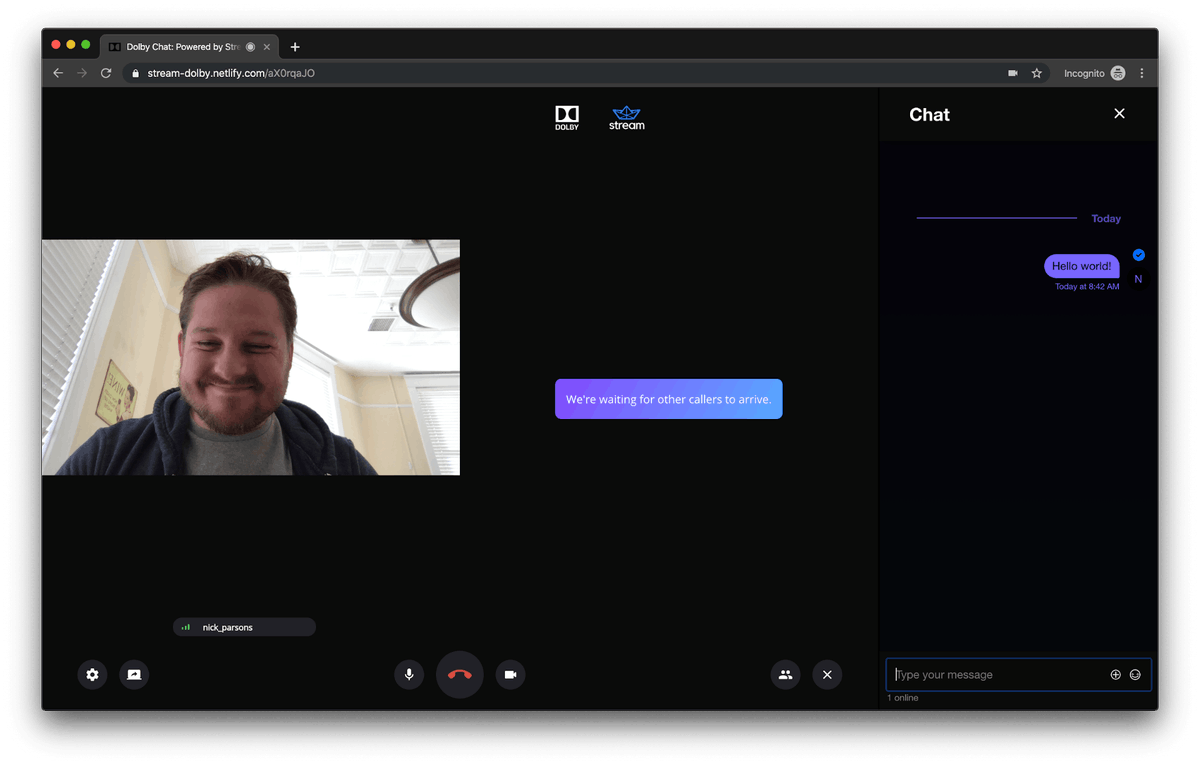 Pretty proud of this build – Dolby/Voxeet + Stream Chat for an awesome real-time video conference and chat experience. The full tutorial on how it was built can be found on the