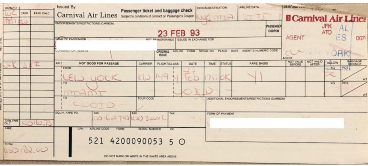 Fun reminder of how far we've come from a technology perspective in a relatively short period of time. This is what airline tickets looked like in 1993.pic.twitter.com/nU5BtgttIC