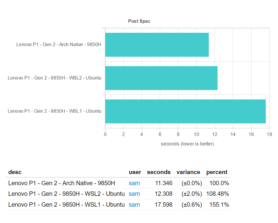 If you are on Windows and using WSL for development, join the slow ring and use WSL2, you will not regret it. https://gist.github.com/SamSaffron/d5c25829db17ab411fee3c17a10fbb87 … is a new benchmark I have been hacking on.pic.twitter.com/QOoP5zae8e
