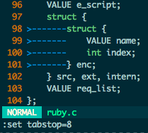 @josh_cheek I have no clue why MRI uses "tabs when possible, spaces for less than 8"