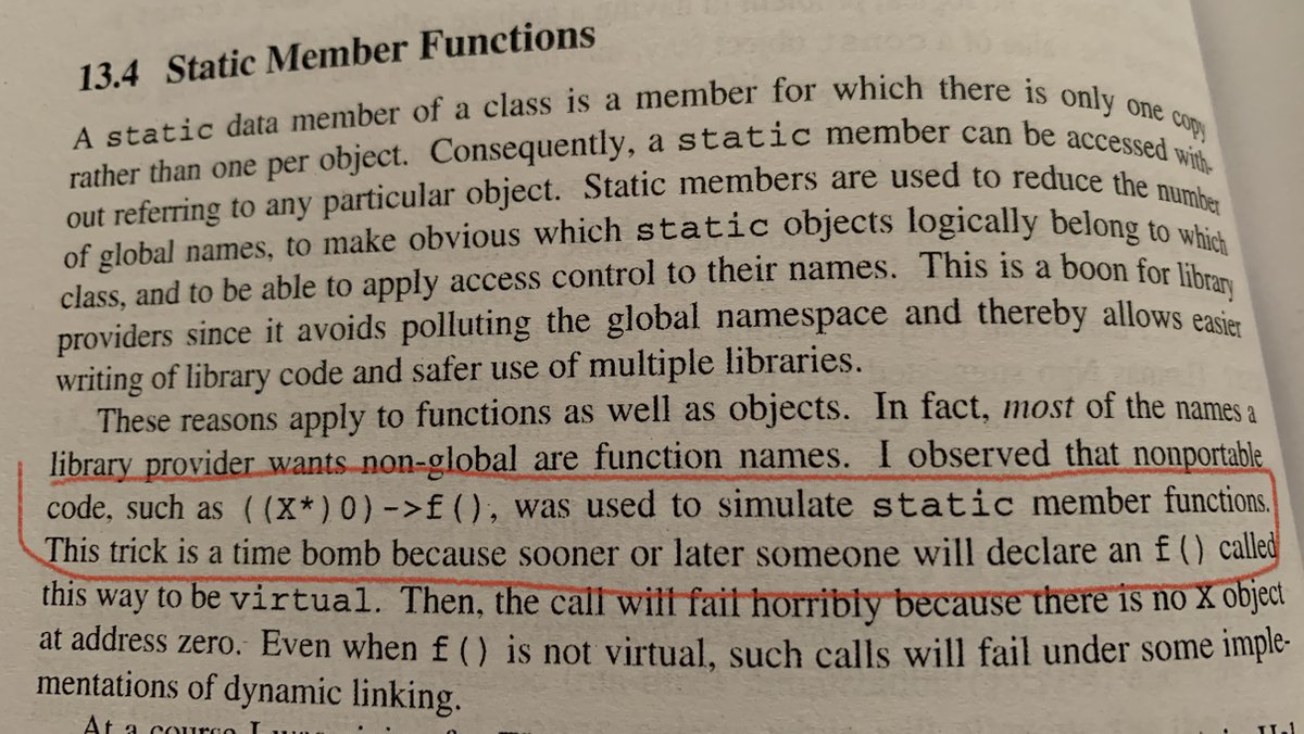 Rereading “The Design and Evolution of C++” ((X*)0)->f() Used to be used to simulate static member functions