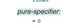 Rereading “The Design and Evolution of C++” = 0 syntax was used for pure virtual function in order to avoid having to add a new keyword such as pure or abstract because the feature was added close to the next release.