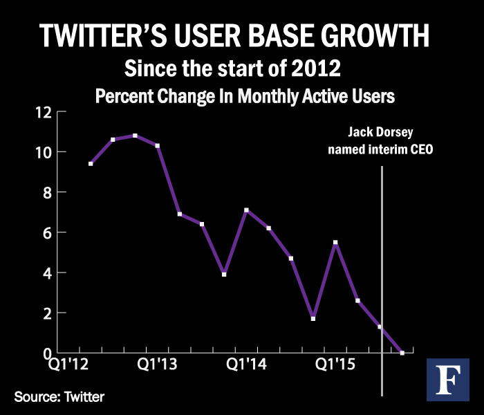 Jack Dorsey's top 5 priorities for Twitter in 2016 focus on users. These 3 charts show why: http://onforb.es/1WhQPGo pic.twitter.com/mgNoIBif7Q