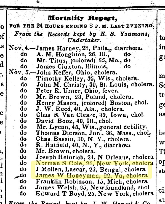 I'm digging into California's early South Asian history, and this is the oldest record I've found—a 23 year old lascar seaman from India, born after the 1st great cholera pandemic, who crossed an ocean to Gold Rush Calif, only to die in the 2nd cholera pandemic in 1850 Sacramentopic.twitter.com/UrQdoR6pkH