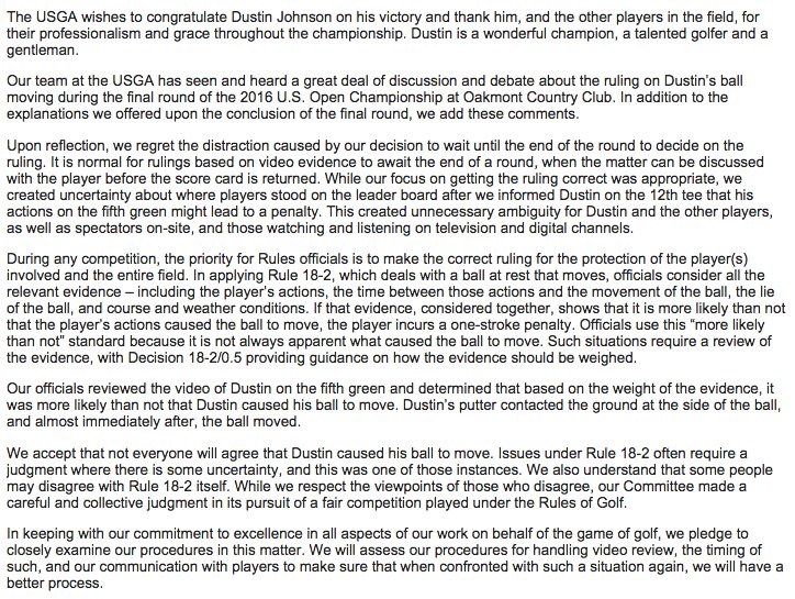 explanation terrible, 2 people out of millions think DJ caused ball to move. Can't continue to have 17 handicap hacks ruling