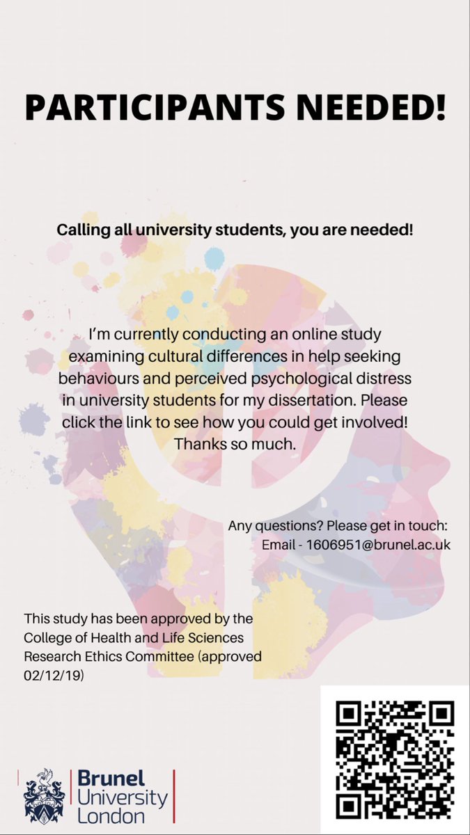 Are you currently a university student? Do you like contributing to the advancement of psychological research? If the answer is yes then take 5 minutes to fill in this survey on help-seeking behaviour in university students for