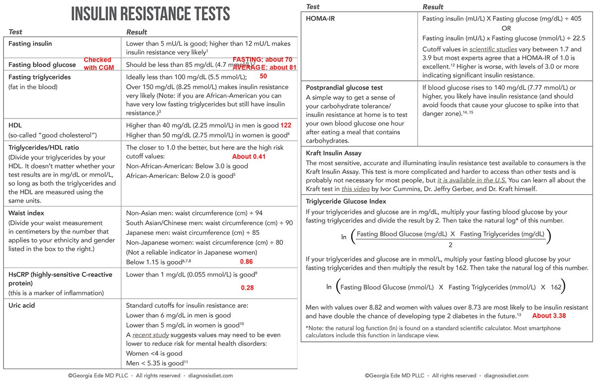 Here are some of my labs after several months on the Carnivore Diet: HS-CRP of 0.28 is very good! VERY good glucose response over 2 14-day CGM sensors. Excellent Omega-3 status. NO pathological insulin-resistance. I'm 72: how many far younger people have labs like these?pic.twitter.com/lypGi0R32I