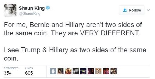 Bernie is your Achilles heal — like you are totally in sync with reality and then you have this obsession with this egomaniacal white man - it’s weird