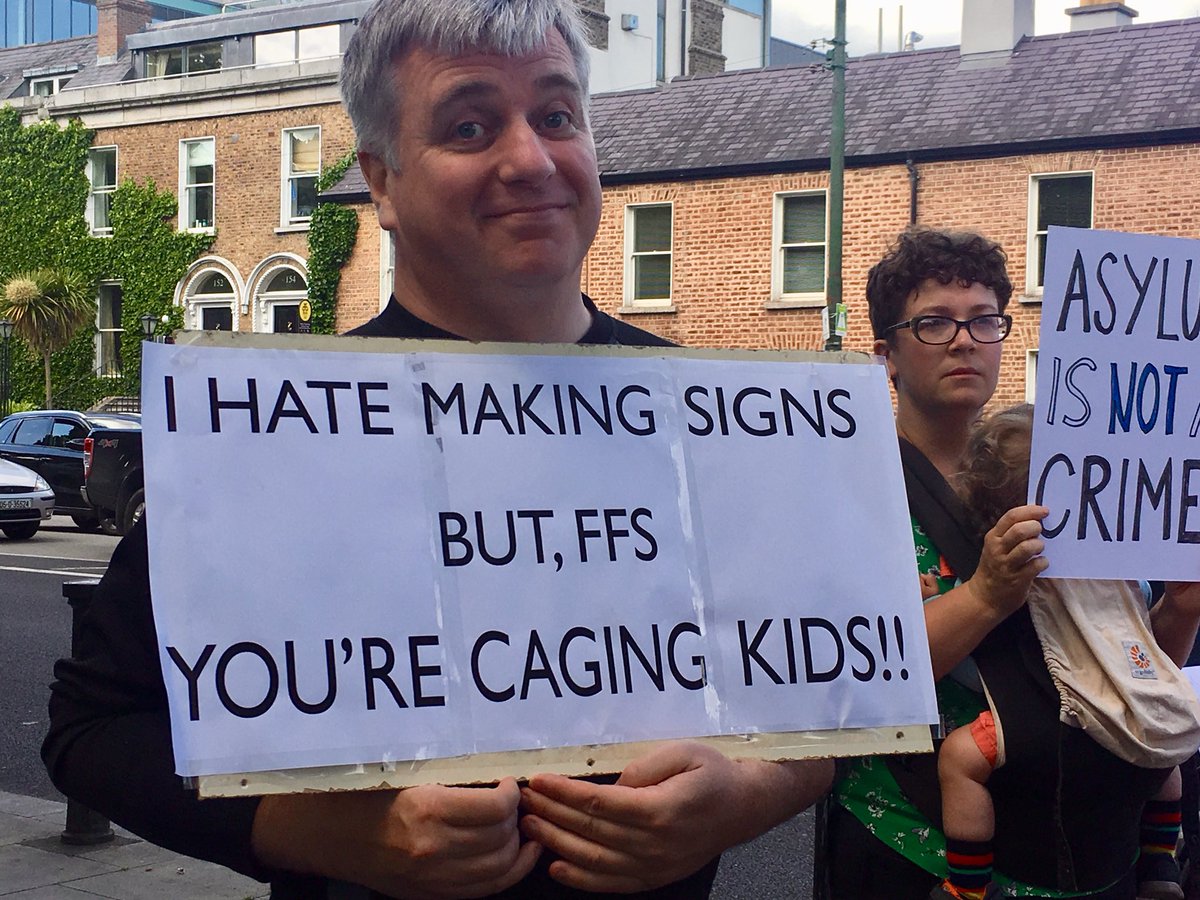 I feel most at peace these days with a sign in my hand, outside the Federal Detention Center here. I know it's not doing much, but they're there... and I am too. My heart is inside with them.
