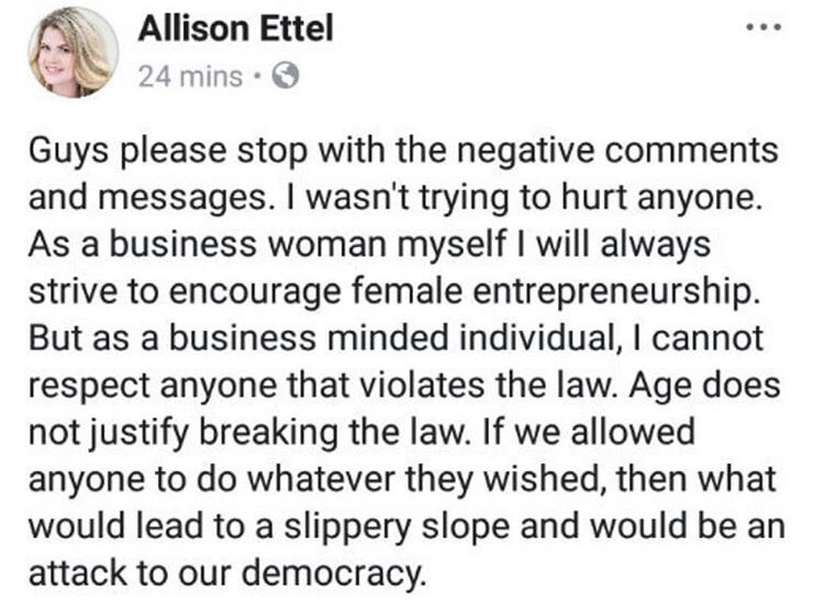 Pot calling the kettle black - she operates a $1m business without the proper permit...