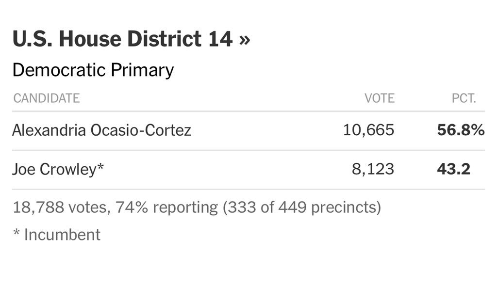 LOOK!! @Ocasio2018 is up by 15% w/ 31% of the vote in!!!pic.twitter.com/YeFQs3nYC3