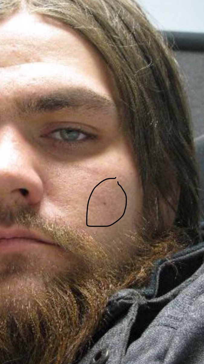 Eye folds are different, and those facial blemishes are not in the same location, higher on the unknown guy.