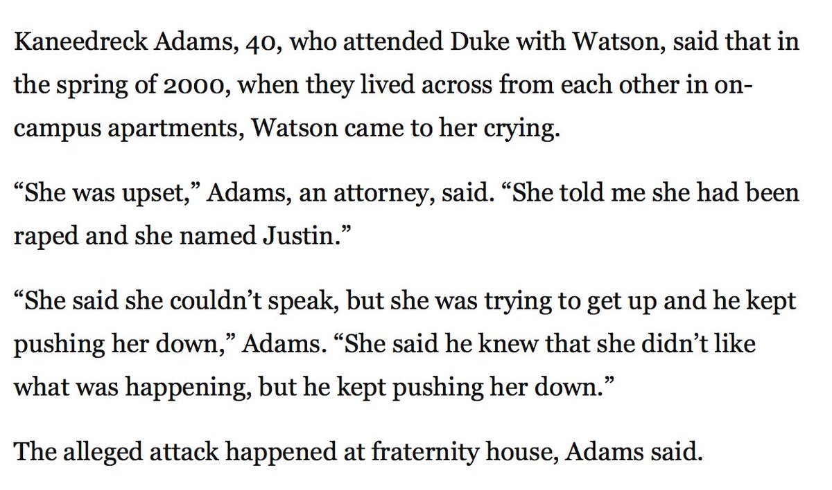 in my youth, i cried after every ugly guy i hooked up with. that doesnt meanshit.. if she's so eager to come out and name JUSTIN FAIRFAX, why she protecting the duke basket ball player? why does he get to be anonymous?