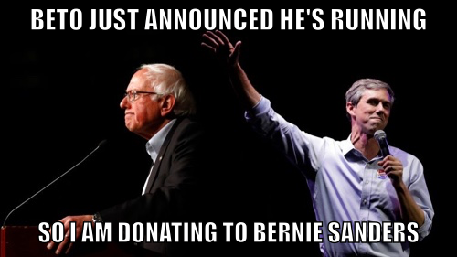 guys - on a very personal note - I was so inspired by Bernie Sanders, just like wow - and that is why today I am announcing my candidacy for 2020 against Bernie Sanders